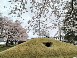 芳賀町観光協会主催の桜の名所を巡るデジタルスタンプラリーで訪れました。本日9か所目です。公園の向いに祖母井城跡の説明板があります。かつては本丸跡だったとされる場所で公園の名もソレにあやかって付けられたのだろうと思いました。園内には旧芳賀町役場跡の標柱が立っていて役場建設にあたり土塁が削平されたと説明板にあります。サクラは遊具で遊ぶ子供達の邪魔にならず東屋からの園内全体の眺めを配慮しているように植栽されております。サクラの花々が鉛色の空を吹き飛ばすように咲いておりました。 (訪問:2023/03/25)