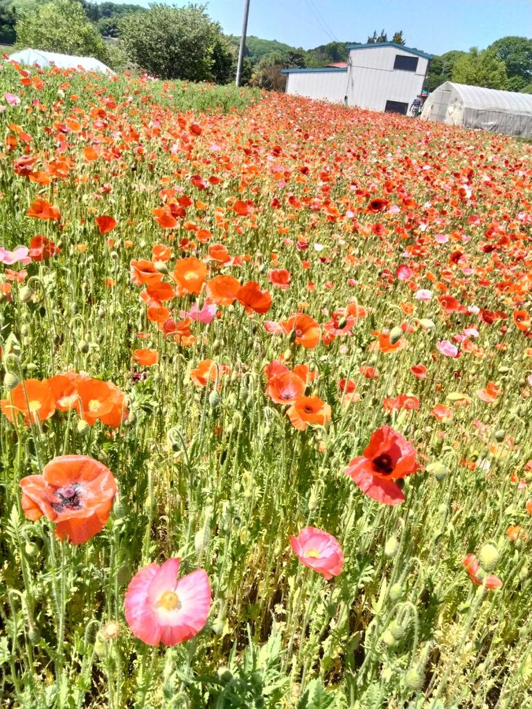 那珂川町谷田の「星の見える丘農園」近くの畑で(国道294号から500mほど)ポピーの花が鮮やかに咲き誇ります。まるで真紅の絨毯のよう!ぜひお楽しみください。