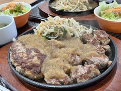 お肉が食べたくなって来店♪期間限定のイタリアンメニューがあったので、迷わずに注文しました!果実感のあるトマトソースは絶品で、ハンバーグとチキンステーキの相性抜群でした!意外にも、付け合わせのモヤシも美味しく頂けました!ライスはガーリックライスに変更して、がっつりなランチタイムにしました〜!ご馳走様でした〜! (訪問:2025/10/31)