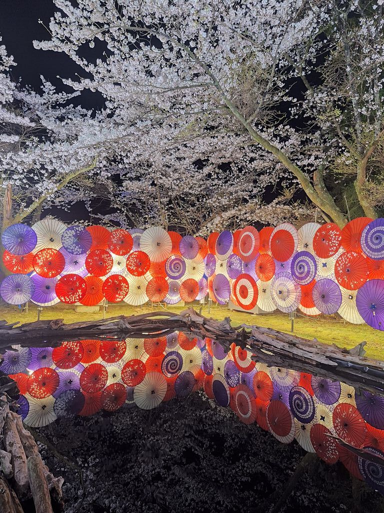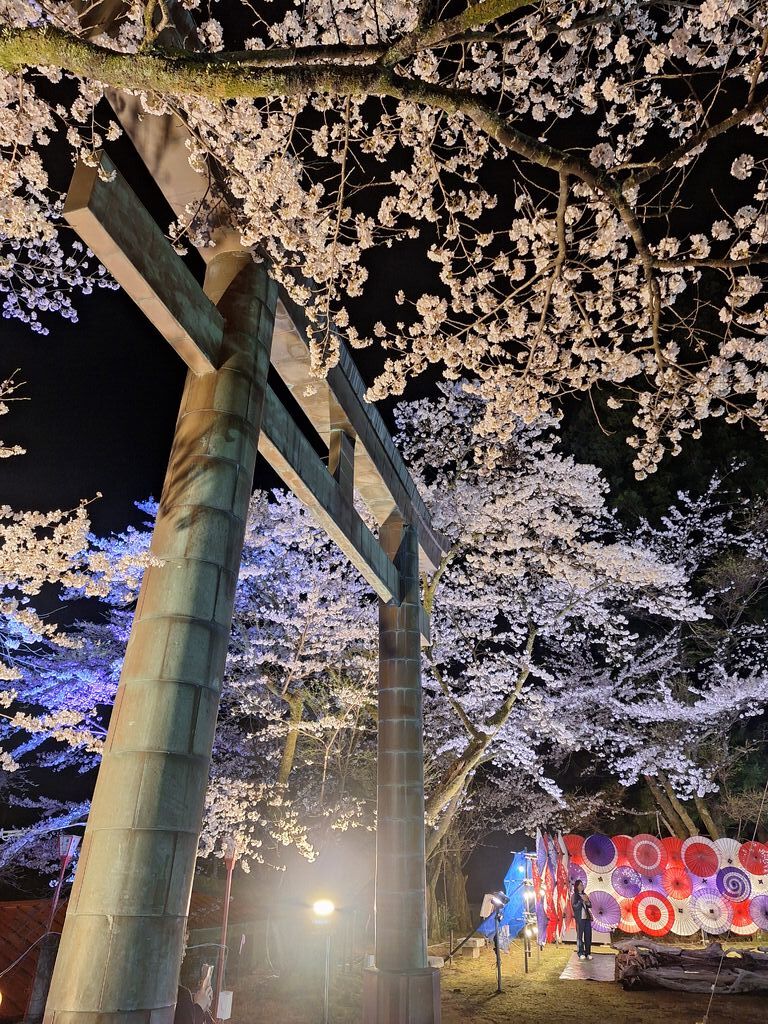 NEW鬼怒川温泉夜桜ライトアップ鬼怒川万華鏡、昨年見てとても良かったので今年も参戦して参りました。行く少し前、輪王寺周辺はどしゃ降りのごとく降っていて、こりゃ無理かなぁと心配してましたが、会場に着くと、傘がなくても気にならない程度の雨でラッキー!満開を思わせる、満開一歩手前の桜の数々に思わず息を飲むほど。感動する圧巻の光景です☆皆さん、こちらの桜の素晴らしさに感動の声がたくさんで、きて良かった‼どこの桜よりも綺麗‼なんて声が上がっていました。管理されてる方々の努力の賜物ですね^^水鏡では、肉眼ではしっかり桜が写って見えましたが、スマホカメラだと限界。でも心の記憶にしっかり焼き付けられて大満足!こちらのお社で、昨年お願いさせていただいたお仕事関係。昨年一年間頑張りつつ見守ってくださったお陰か、一緒に仕事ができて良かった、これからも一緒に仕事したい等と声をもらえ、嬉しい限り。お礼を述べつつ、今年も一年頑張りますので引き続き見守ってください、お願いさせてもらいました。素敵な桜と神様に励ましてもらった気分です♪ (訪問:2026/04/05)