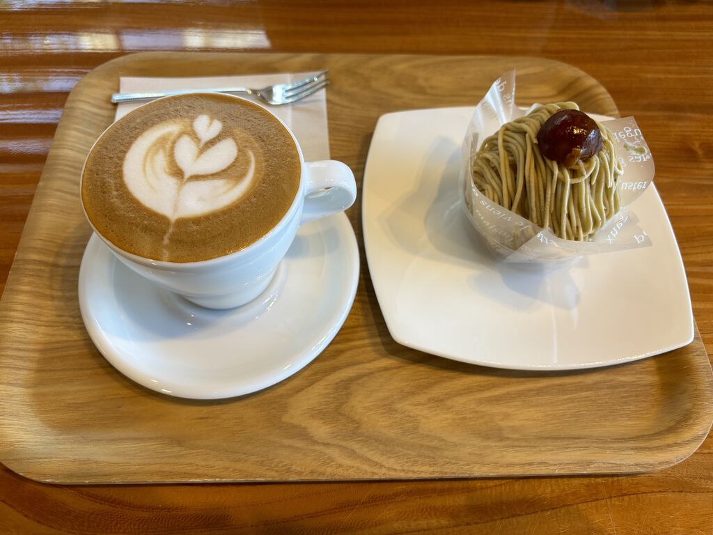 美味しいコーヒーが飲みたくなり、また行ってきました!ケーキセット(¥920)にカフェラテ(+¥20)と和栗のモンブラン(+¥80)を頂きました。カフェラテはカップにたっぷりと、モンブランは今まで食べたものの中ですごく栗の感じがフワッとして美味しかったです。コーヒーが美味しいのはもちろんですが、ケーキも何を食べてもハズレないです!おすすめのカフェです♪ (訪問:2024/01/12)