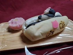 今年も2日と3日に開催されたにこっぺ!去年こちらのにこっぺに出会ってからお店のファンになり、今年ももちろんゲット!!10時半過ぎお邪魔して無事『ねむりねこっぺX500円』と、『上生菓子(秋桜)270円』をゲット。今年もほんわか和む表情の眠り猫さん。見れば見る程癖になるアンニュイなお顔にキュン。今年はゴマ餡。去年とお味も異なりワクワク。生クリームが挟まってるので、保冷バックに保冷剤を山ほど入れて行ったので、帰宅後も安心の状態。しばしねこさんを堪能した後ガブリ。ゴマ餡の香ばしい香りと生クリームのコクがマッチした甘すぎないこっぺ。これだけでも十分美味しいですが、目を合わせないようにねこさんをガブリ。上品な甘味がガツンと来る旨さ☆羊羮の足跡もウマウマ。今年も大満足です!!上生菓子が美味しいこちら、初秋らしくお花よりも少し早い美味しい秋桜が登場。目でも楽しめ、食べ応えもあり大満足な秋桜でした♪涼しん棒というくずアイスも発売されており、次回の訪問が楽しみです^^ (訪問:2023/09/02)