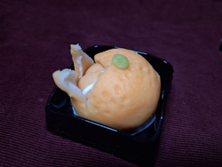 美味しい餡がお気に入りのこちら。16時前の訪問で在庫が少なくなってる様子。ずーっと気になっていた『あずき豆腐756円』と、可愛い『上生菓子(とちおとめ/蜜柑)各270円』をゲット。ごま豆腐のようなもっちりとしたあずき豆腐。葛のもっちりプルン感が冷やしていただくたより感じられ食感が良い^^甘すぎず、あっさりしすぎず、ほどよい甘味で次々口に運びたくなる美味しさ♪ラスイチだったのも納得です。こちらの上生菓子、お花系をよく見ていましたが、可愛いとちおとめと蜜柑に一目惚れ。とちおとめは表面が寒天?でコーティングされているのか艶々で、収穫したての苺を連想させます。蜜柑は一部皮がむけていましたが、食べるときそこを剥いてみると、ちゃんと皮と果肉で別れており、すごーく丁寧に作られていて、芸が細かい!!もちろんお味も美味しくて、見た目も味も大満足でした☆ (訪問:2023/12/24)