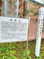 1878年に設けられた測量基準線で日本遺産構成文化財の一つです。こちらは那須基線南端点(大田原市文化財)で那須塩原市の那須基線北端点(那須塩原市文化財)とにまたがり遺跡が残存しております。2点間の距離は約10.628kmで北端点と南端点に至る直線は現在も10kmの真っ直ぐな道路として残っていて「たて道」とか「ライスライン」と呼ばれかつては開拓道路とされていました。約30万分の1の精度で測定され当時は2点に木のヤグラがあり天体観測の場になっていたことから観象台との名称があります。南端点は2000年1月に復元され地上と地下は大谷石、蓋は芦野石、最下部は鉄筋コンクリートが打設されております。6年程でお役御免となり長い間荒れ放題だった場所が整備され日の目を見て良かったと思いました。日本の近代測量を語る上で貴重な存在です。 (訪問:2023/10/01)