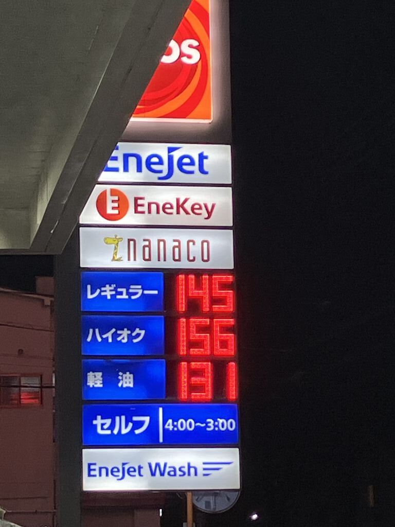 通りかかりったらナントレギュラーをはじめ各種またまた安くなってました‼️レギュラーリッター145円でいつものようにエネオスクーポン4円引き+エネキーで1円引きで実質リッター140円に(^^)有り難いです❣️ (訪問:2025/12/26)