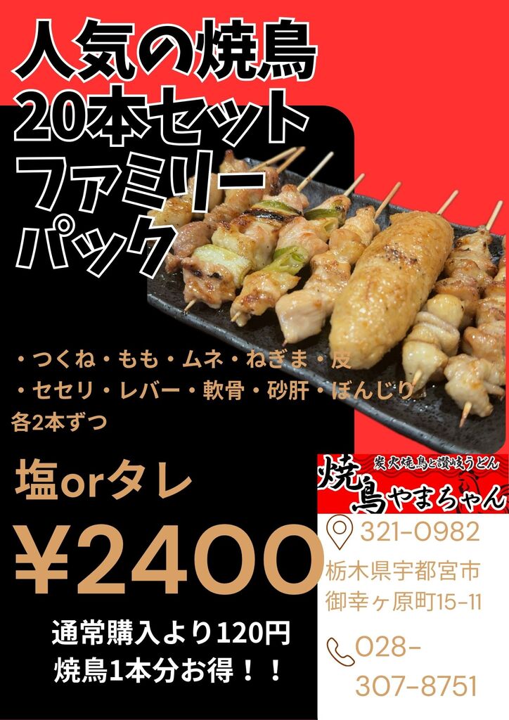 宇都宮市の焼き鳥・串焼き・やきとり・うどん・テイクアウト