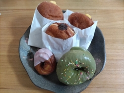 NEW一度購入してまた食べたいと思っていました。17時頃だったので生ドーナツのカスタードは最後の2個、チョコは最後の1個でした。それとエミナクルーラーチョコ、リング抹茶チョコです。生ドーナツはもっちもちの生地にたっぷり入ったクリームで自然に笑顔になってしまいます。イートインもできるのでゆっくりおしゃべりしながらいただくのも良いですね。 (訪問:2025/10/18)