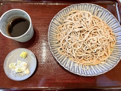 月曜日の昼どきに初訪問。カウンター席に案内されると、すぐにお茶と蕎麦チップスが提供されました。窓の外に竹林と(錦鯉が優雅に泳ぐ)池を眺めることができます。蕎麦チップスをポリポリと食べながら待っていると、注文した「せいろ蕎麦」が登場しました。蕎麦の心地よい喉越し感と、蕎麦湯の濃厚な風味を十分に堪能することができました・・・しかし、私がこれだけで終わるはずがありません(笑)。もちろん、食後のデザートとして「そば粉のバターケーキと季節のアイス」をいただきました。しっとり食感のケーキと冷たいアイスにも大満足です。駐車場は店頭と道路を挟んだ向かい側にありますが、JR間々田駅(東口)から近いので(歩いて5~6分)、車・電車のどちらで行くにも便利です。非日常的な雰囲気の中で美味しい蕎麦(とデザート)が味わえるお店・・オススメです。 (訪問:2025/12/08)