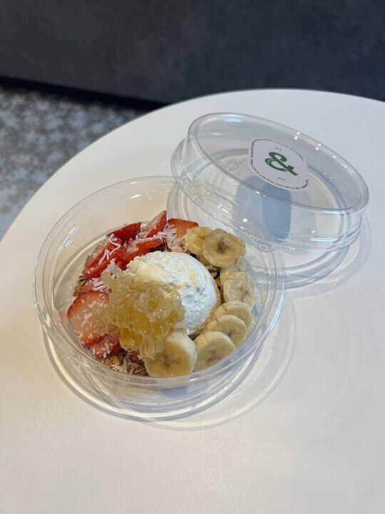 前回チョップドサラダをいただき、今回はグリークヨーグルトを買いに。インスタフォロワー1000人達成でグリークヨーグルトが通常のシングルのお値段でダブルに出来るとのことでお得でした。ストロベリーバナナを購入。別容器ではちみつもついてきました。グリークヨーグルトはもったりしていてお腹にしっかりたまるし、ヘルシーだけど量もあり、ボリューム感がありました。 (訪問:2025/02/11)