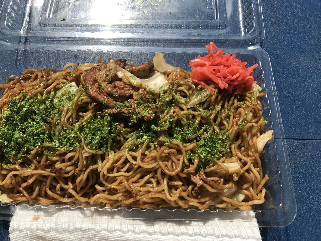 焼きそばは、生蒸し麺に甘辛く酸味が程よいブレンドソースを使い、具材は国内産にこだわり、分厚い特製鉄板でお作りします!からあげは、青森産にんにくを使いジューシーで衣はサクサク!日曜日は、お赤飯のお供に手作りお惣菜も併せてお楽しみください♪