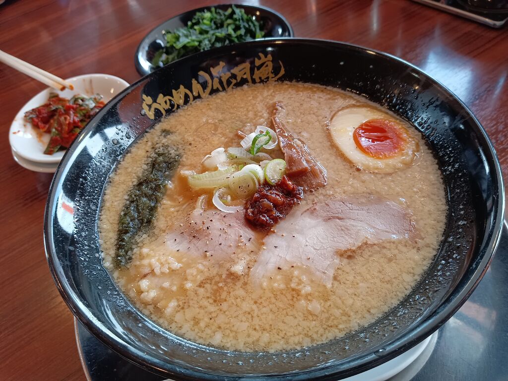 川越達也シェフ監修の期間限定味噌ラーメンを食べに行ったのですが完売になってました。仕方ないので、嵐げんこつらあめんを注文。いつもの安定の味、美味しかった。今日はほうれん草をトッピングしてみました。ごちそうさまでした。 (訪問:2025/04/02)