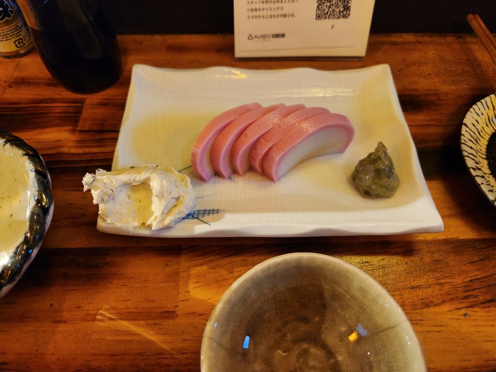午前中、市役所で説明会があったので帰りに昼飲みです。前回、おつまみが美味しかったのでホットペッパーで予約して訪問しました。注文は「ミニトマト豚巻串 210円×2」「うずら豚巻串 210円×2」「くるり串 170円×2」「馬レバー刺 1,980円」「焼鳥かわ 200円×2」「エビチリ豚巻串 420円×2」「パクチー豚巻串 190円」「キムチ豚巻串 190円×2」「馬刺し刺身 1,020円」「梅水晶 500円」「塩辛 520円」「いかの一夜干し 720円」「100分飲み放題コース 1,980→1,780円」「望 1,100円」「楽器正宗 1,000円」今回もおつまみが美味しくて沢山注文。連れも喜んでくれて4時間以上飲んでしまいました。 (訪問:2025/09/27)