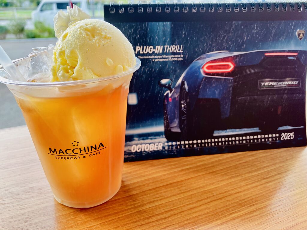 初訪問です♪【紅茶フロートとブラッドオレンジ】を着席前にオーダー‼︎大好きな紅茶のフロートがメニューにあるのは、嬉しい⤴︎⤴︎私の記憶が正しければ5〜6歳の時にイトコの影響でランボルギーニカウンタックを知ってからSUPER CAR が好きになりました。当時は、よくガチャガチャで当たるとSUPER CAR のポスターが貰えたので夢中で通った憶えがあります(^^)店内には《ランボルギーニ アヴェンタドール》が‼︎やっぱりカッコイイですね!もう少し早く来店出来ればカウンタックが見られたのですが・・・。できれば車が変わる毎にお邪魔したいなぁ〜(o˘◡︎˘o)♪︎ところでカフェタイムを満喫していたら3台続けてフェラーリがやって来た!お客様のSUPER CARもカフェから眺められてワクワクします♪︎ヽ(喜・▽︎・*)乂(*・▽︎・嬉)ノ*撮影許可済み→撮影する際は必ずスタッフさんに許可を取ってからにしてね(^^) (訪問:2025/07/27)