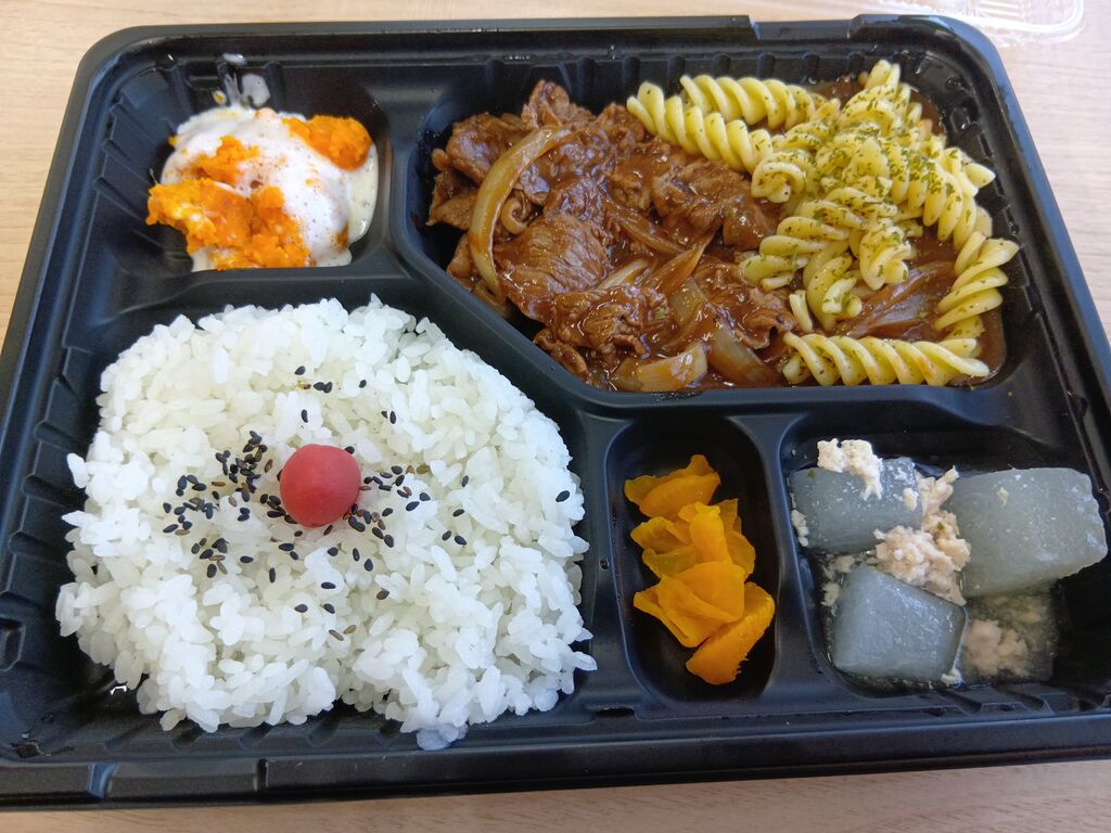 お昼にお弁当を頼みました。今週の週替り弁当は牛肉のワイン煮でした。玉ねぎと相性も抜群でとても美味しかったです。副菜のパスタもソースをからめて食べて最高でした。皆さんも是非食べてみて下さい。 (訪問:2025/11/10)