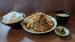今日は、もう一つのメニュー、モツと野菜マシマシ定食 焦がしたにんにくブラックを頂きに。マスターより旨辛コク味噌レッドを仕様変更したのこと、次回はぜひとも (訪問:2025/10/22)