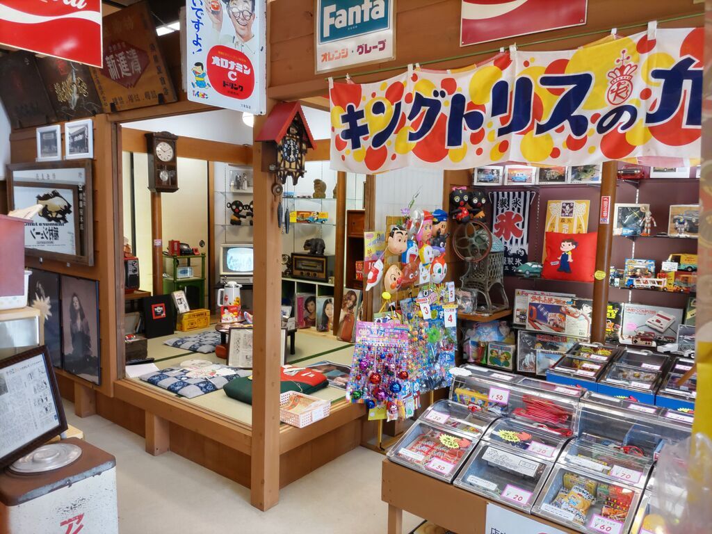 | ◇レトログッズ約3,000点が並ぶ館内 ※入館無料、運営協力金(お一人様1口100円)をご協力いただけた方には、オリジナルステッカー(非売品)をプレゼント! | 「五感で楽しむ昭和レトロ」をテーマに、懐かしい昭和の駄菓子屋さんや、タバコ屋さん、文房具屋さん、三畳の茶の間などが再現され、子どもから大人まで楽しめる体験型ミニテーマパークになっています。 |