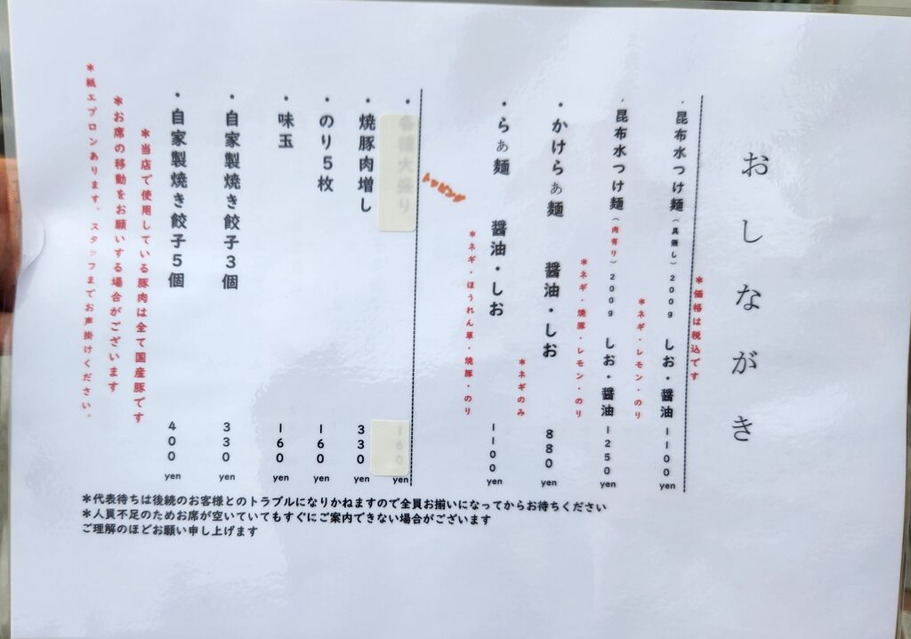 NEW平日のお昼に初めて行きました。ラーメン屋さんに見えないスマートな店構えで、12時をまわるとすぐ満席に。ほとんどの人が頼んでいた「昆布水つけ麺」をいただきましたか、昆布水に浸った麺は モッチモチ。旨みが凝縮した、とろみのある昆布水は、免疫力の向上や美肌効果、コレステロールの低下等も期待できるらしく、スープに割って飲んでも美味しかったです (◍•ᴗ•◍)♪ (訪問:2025/11/14)