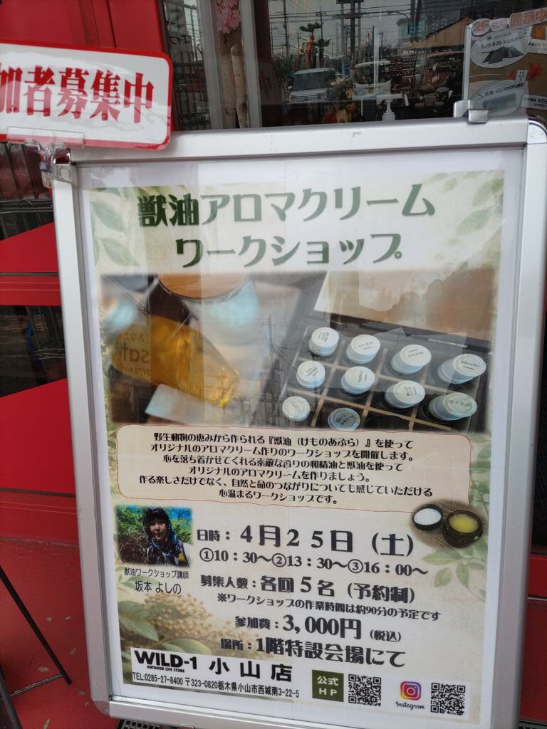 最近の子どものお気に入りのニット帽。暖かくなってきたので明るめのものを探していたら可愛いの見つけました。ワークショップは獣油アロマクリームだそうです。どんな香りがするのか興味があります。 (訪問:2026/04/07)