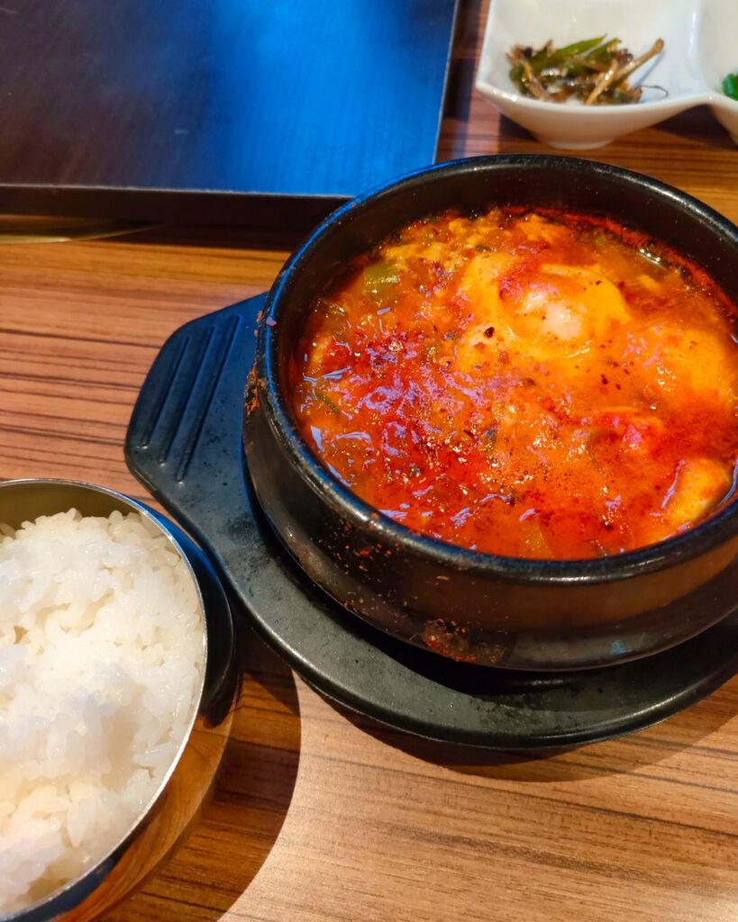 【スンドゥブチゲセット】JR宇都宮駅西口にあるお店。ランチで伺いました♪スンドゥブのランチセットを注文!サラダや前菜がついてきました。コスパも高くてまた行きたいと思います(*^^*) (訪問:2025/01/16)
