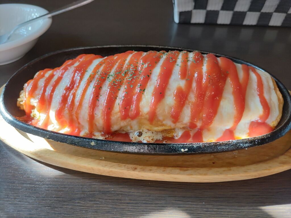 11月のランチタイムベスト3のオムライスグラタンをいただきました。サラダとドリンクが付いて、税込み1200円。なかなかにありがたいお値段です。サラダはドレッシングがたっぷりで、素晴らしくおいしいです。ミニサラダとなっていますが、ボリューム的に丁度いい感じです。そして、オムライスグラタン。熱々鉄板の上で、じゅーじゅー言ってます。ボリュームもあって、まじ美味しそう。とにかく熱々なので、ちょこっとずつしか食べられないのですが、とろとろのチーズとケチャップライスのコラボは、極旨。鉄板のはじっこに焦げ付いた、たまごとケチャップとチーズの競演も見事においしいです。熱々なのに、おいしいので、食べるスピードは上がるばかり。あっという間に完食です。第3位がこれだけおいしいなら、1位と2位も、もちろん気になります。シェフひとりでの切り盛りなので、時間たっぷりとって、またお伺いしたいと思います。 (訪問:2023/12/01)