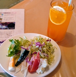 平日11時過ぎ訪問。先月放送の日本テレビ『メシドラ』ロケ地です☆注文は<山菜ピラフ/バターライス¥850>と<ジュエルセット/サラダ•ドリンク•デザート¥1000>を。ピラフはバターライスかドライカレーを選べます。サラダは種類豊富でオリジナルドレッシングが美味♪ピラフは軽食なので大盛りも可能です。テレビでも紹介されたコーヒーゼリーは是非食べて欲しい逸品です♡各テーブルにロケの様子が貼ってありました◎ (訪問:2025/03/06)