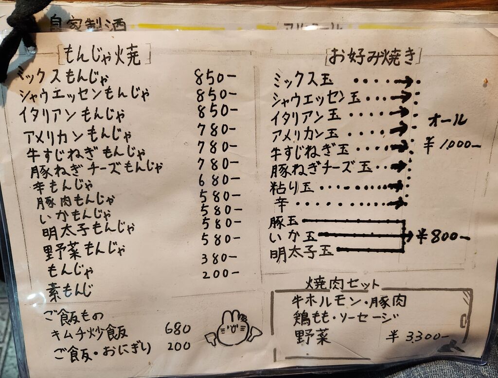 もんじゃ焼きが食べたくなり妻と近所のお店に訪問しました。注文は「ミックスもんじゃ 850円」「明太子もんじゃ 580円」「もちトッピング +50円」「シャウエッセンもんじゃ 850円」「カレートッピング +10円」「お通し 300円」「ウーロンハイ 420円」「ブルーベリー酒 450円」「梅酒 450円」「ゆず酒 450円」「ホットウーロン茶 280円」久しぶりのもんじゃ焼き美味しかった。明太子にもち、最後はカレーでお腹一杯です。 (訪問:2024/12/14)