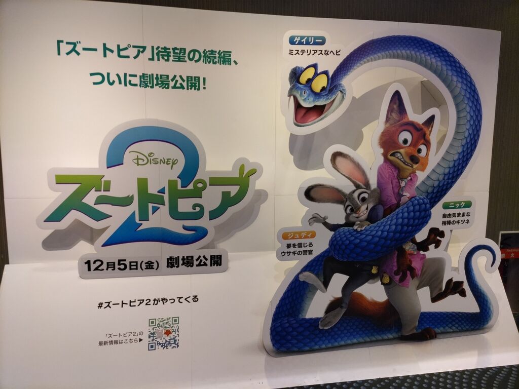 2025年最後の映画鑑賞は「ズートピア2」です。ライブビューイングは観たことがありますが、TOHOでの映画鑑賞は初めてです。座席がしっかりしていて前後の座席間隔が広いのでゆったり観ることができました。「ズートピア2」は元気をもらえる楽しい映画で、最後を締めくくるのが「ズートピア2」で良かったなと思いました。これからTOHOさんも利用させていただきます。 (訪問:2025/12/30)