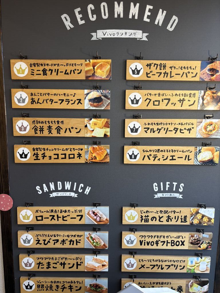 随分とお久しぶりの vivo。嬉しいです。店内には、様々な美しいパンが並んでいました。入口付近にノアキャラメルがあって、思わずそれを選びました。他の所で、それらしきもの販売が中止になっていて 探していたんです。あとは、餅麦食パンを一斤買いました。美しくて 夢があるパンたちも魅力ですが シンプルな食パンにはパンの基本的な美味しさが詰まっているような気がしてなりません。食パン、試してみてください。 (訪問:2025/11/14)
