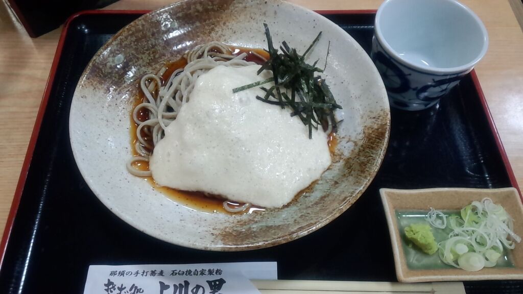 晩御飯にお蕎麦が食べたいな~と思い、以前より目の前を通っていたこちらへ19時半頃伺っちゃいました。入口すぐ脇にはそば打ちスペースがあり、時間によっては見ることもできるんだろうな~。気になっていたしらゆきは当然のことながら売り切れ、今回は『冷やしとろろそば』を田舎蕎麦で頂きました。待っている間に店内で流れているそば打ちのビデオを見てお蕎麦について勉強できちゃいました。大きなお皿にこんもり盛られた田舎蕎麦にとろろがたっぷり、見た目綺麗☆早速頂きましたが、お蕎麦の茹で加減、固めで好きですね~。噛めば噛むほど蕎麦の香りがふわ~っとして美味しいです。とろろは粘りが強いのに、口に入れるとふわふわな触感。イコールにならない相反する状態にするにはどうしたら良いんでしょうか??最後までお蕎麦に絡む粘り気で美味しく完食です(*´∀`*)蕎麦湯が他店と比べさらっとしているのに風味がしっかりとあるのに、飲みやすいのにも好印象です。次回こそ、早く行ってしらゆきを頂きたいものです♪ (訪問:2014/04)