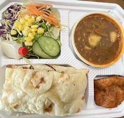 前を通ると美味しそうなカレーの香り♪お客さんも沢山入っていて、いつも気になっていたので初訪問。テイクアウトしました。10分ほどかかるとのこと、店内の椅子に座って待たせてもらいました。麦茶のサービスがあって嬉しかったです!辛いのが苦手なので、リッチ弁当のシーフードカレーでナンを注文。サラダ、ディッカ付き。ディッカは見た目は辛そうでしたが辛くなく柔らかくて美味しい♪カレーは柔らかいイカやアサリがゴロゴロ入って美味しい!そして何よりナンが最高!柔らかくてモチモチ、噛めば噛むほど甘味が広がって美味しい〜!半分はカレーをつけず、ナンだけ食べて味わいました♫チーズナンも気になるー!店員さん日本語お上手で、笑顔で接客して下さり嬉しかったです。次は店内で頂きます、ご馳走様でした! (訪問:2024/02/23)