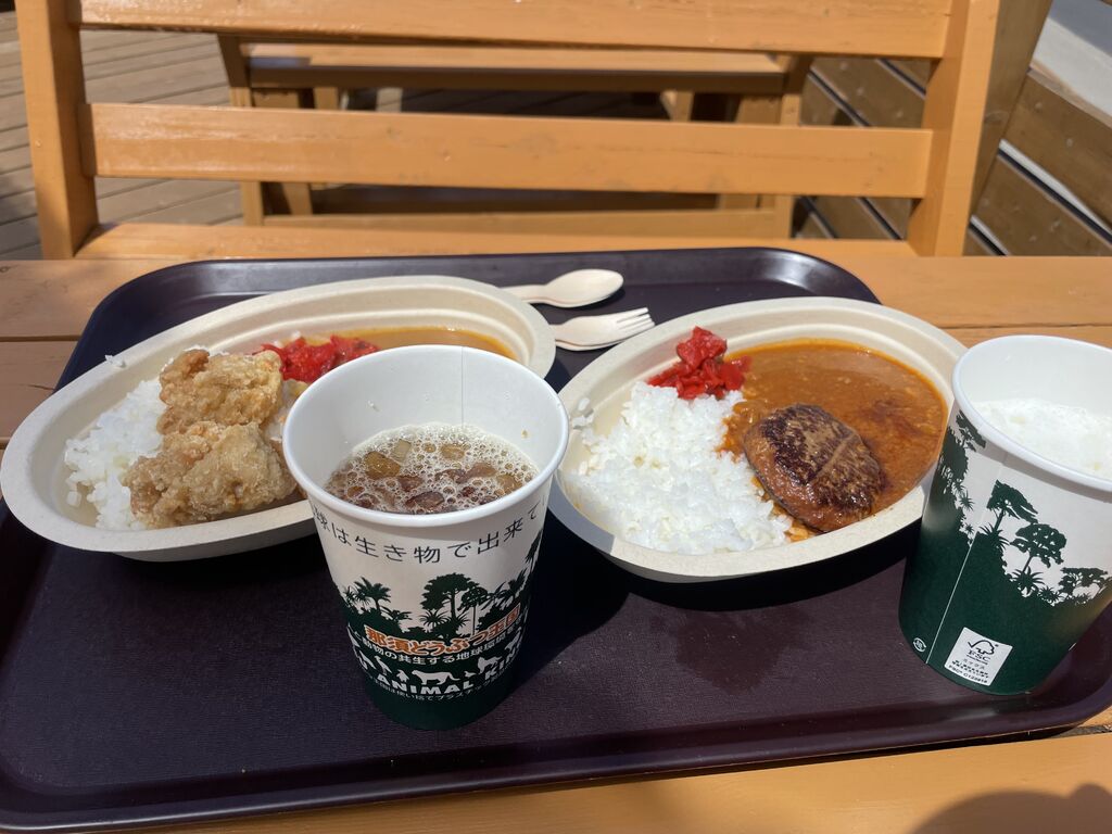 王国ファームエリアのメエメエキッチンを日曜のお昼に利用しました。・唐揚げカレー(1100円)・ハンバーグカレー(1100円)・ラッシー(400円)・ウーロン茶(300円)唐揚げもハンバーグも期待以上に美味しかったです!どうぶつ王国行く時はこのレストラン良いですね!!景色も素晴らしいのでオススメです! (訪問:2026/04/19)