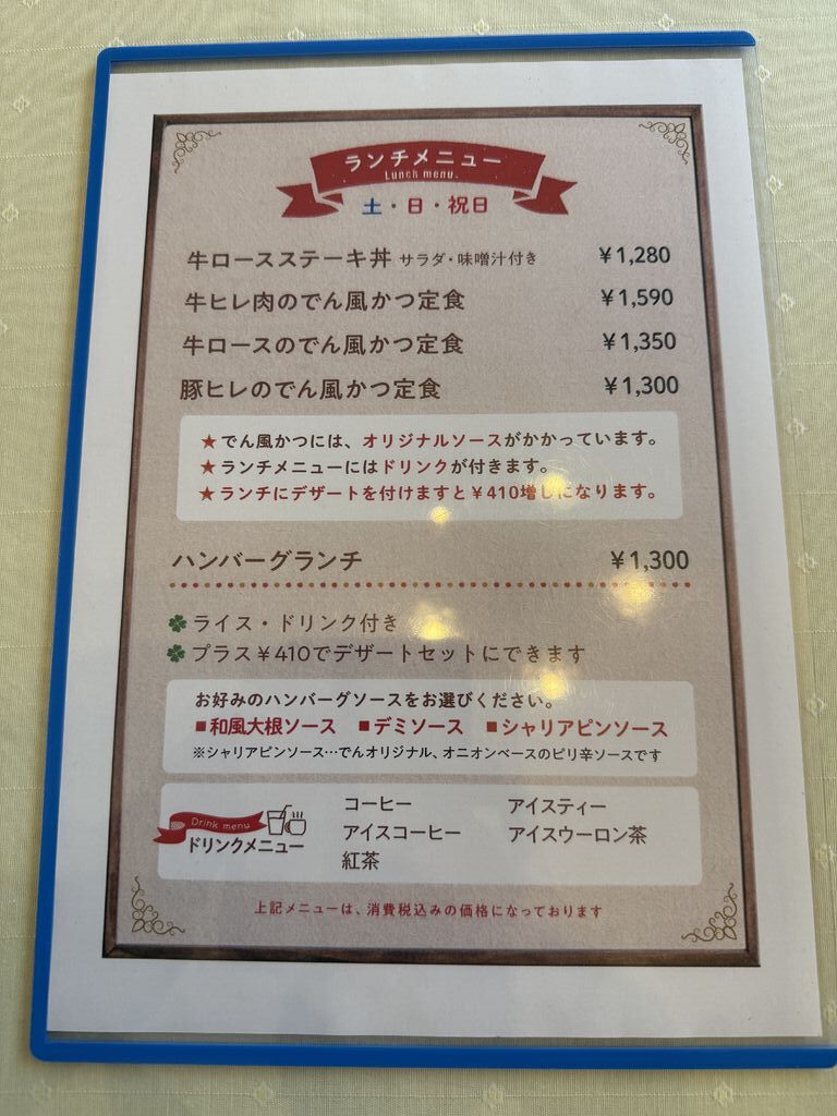 ステーキ丼を食べてきました♪住宅地にある、何故か落ち着くアットホームなお店。店内も素敵な絵画が飾ってあっていい感じです♡お目当てだったステーキ丼は想像よりも柔らかくて美味しくて、姉と二人で感激しちゃいました(≧▽≦)メニューを見ると、『でん風カツ』に惹かれます…お店の名前を使っているという事は、推しメニューなのでしょうか?姉も興味津々なので、また二人で今度は『でん風カツ』をいただきに伺おうねと話してます。ごちそうさまでした♪ (訪問:2022/11/16)