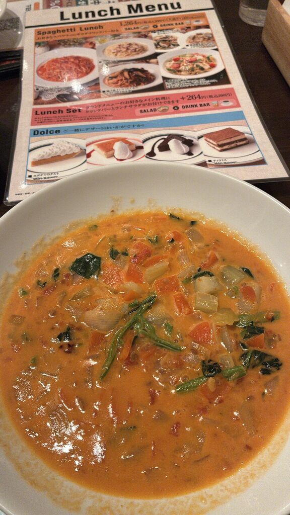 NEW毎月15、16日は店内飲食10%offクーポンがメールで届くのですが今日は16日だったので医者のあとカプリチョーザへ。ミネストローネスープとツナとイカのハーフサラダ。こちらは酸味の効いたドレッシングにイカとツナがよくあいます。ミネストローネスープは玉ねぎ、人参、じゃがいも、ほうれん草、ひき肉が入っていて甘味があり美味しく昼の1食に値する2品でした。 (訪問:2026/03/16)