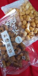知り合いの方から「焼きかりんとう」を頂きました。黒糖のほうは甘くてサクサクカリカリ。醤油のほうはちょっとしょっぱめかな。焼いてあって軽いので ついつい手が出てしまいます。お茶菓子にちょうどいい感じです。(*^^*) (訪問:2019/12/16)