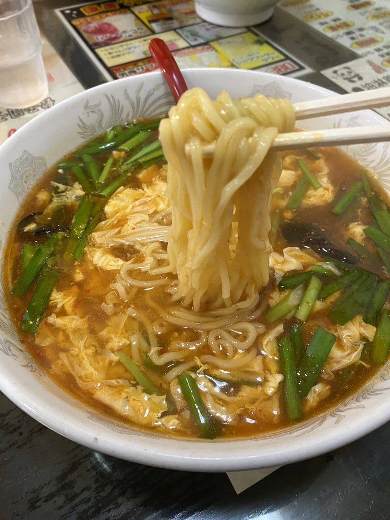 夜に伺う事が多いですが今回は娘と二人でお昼に来ました。お気に入りの麻婆豆腐 エビとたまごの炒め 五目チャーハン…などメニューが多くて迷いますが、幟でいつも気になっていた酸辣湯麺にしました。丼の大きさに驚きながら食べてみると、とろみがついているので熱々。やけどに気をつけて再度 フーフーしながら食べました。辛さと酸味のバランスがちょうど良い。きくらげも大きくて食感が楽しめます。醤油ラーメンが好きな娘は今回は初めて塩ラーメンを食べましたが、よほど美味しかったらしくスープまで飲み切っていました。 (訪問:2023/07/15)