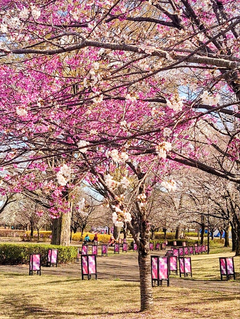 今年もこちらにお花見に伺いましたァ(^o^)/。。。東雲公園には、複数の種類の桜が植樹されているので、開花時期がずれて長い期間に桜の花を愛でることが出来るんです(*^^*)。。。今は、濃いピンク色の桜と八重桜が満開!ソメイヨシノはまだチラホラ!ッとこれからと言う感じです(T-T)。。。来週辺りには色とりどりの満開の桜を楽しめそうですねぇ♪。。。色とりどりの色々な桜を楽しめる『壬生町東雲公園』!素敵ですよゥ( ^-^)ノ∠※。.:*:・'°☆ (訪問:2025/04/05)
