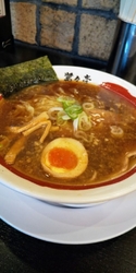 醤油ラーメン693円税込みを注文しました。具材はノリ、ネギ、煮卵、メンマ、チャーシューで瀬戸内海産煮干しを使用した和だしのスープで多少の背油が浮いております。一口レンゲですすって見ると先行して煮干しが口に中に広がり後から鶏、豚、野菜、魚介から取った濃厚でシッカリとした口当たりが続きました。モチモチでツルツルすすれる中太麺と薄切りで肉肉しい味がするチャーシューと他の具材は特に個性が強いスープに身を任せている感じがしスープを飲みながら交互に頂きました。統制の取れた美味しい一杯です。 (訪問:2022/06/18)