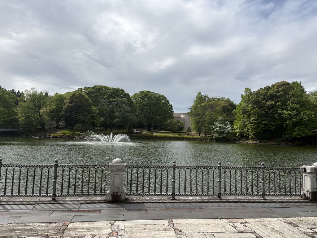 4つの池を中心とした和洋折衷の廻遊式庭園風に構成されており、入口正面に洋風の沈床園、左奥に日本庭園を配し、 その間を大池で結び、博物館との調和を図っています。