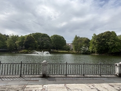 | 園内について | 昭和大池の大噴水や、沈床池の左右対称に配された噴水など、園内の各所に水と緑の融合があります。 |