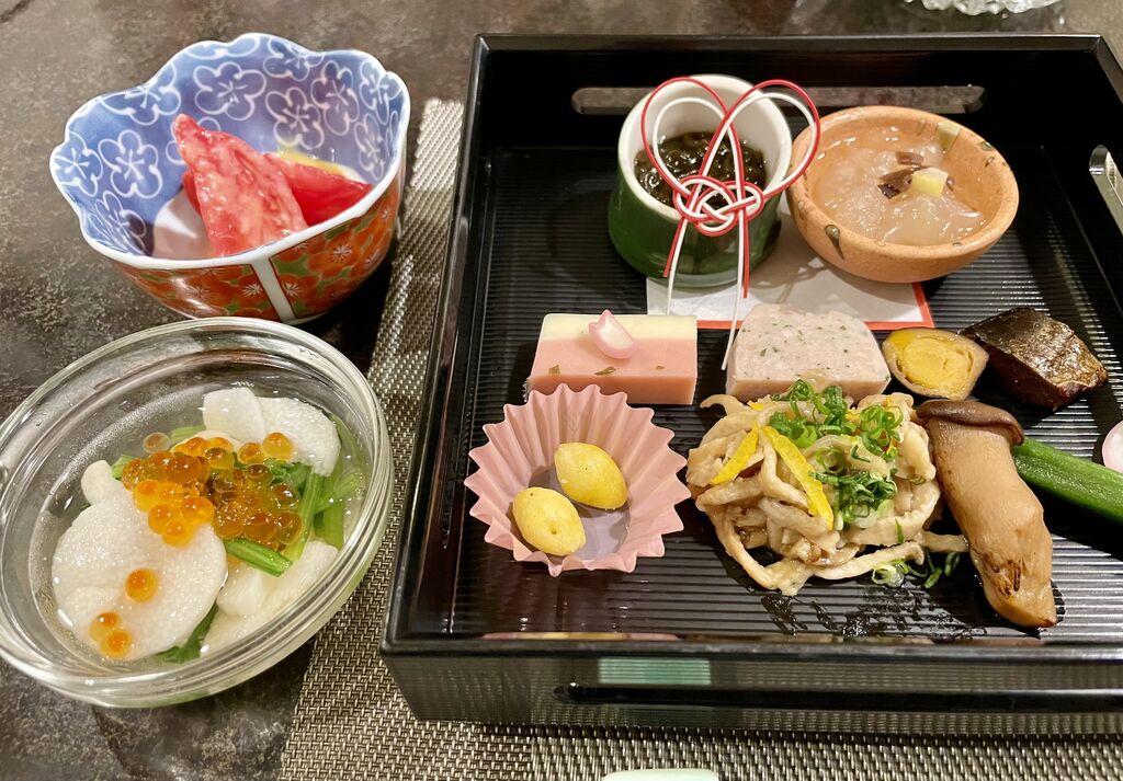ここの創作和食は絶品です。元々、寿司屋なので刺身を主体にした料理。他の和食も旨いです。スタートのオードブル。盛り付けが芸術的。日本酒が進みます。焼き物の鯛も旨い。ウロコのカリカリ感の肉厚な切り身が最高。これも日本酒ですね。日本酒のラインナップや料理に合わせた女将のオススメが嬉しいです。良い店^_^ (訪問:2025/07/08)
