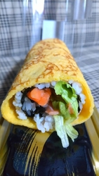 恵方巻です。海苔ではなくて、代わりに薄焼き卵が綺麗に巻いてあります。中身のメインは、大好きな♡サーモンです。思う存分の量が入っていて、美味しくいただきました。1月1日とは又違った意味での1年がスタート。福が来るよう...鬼は外へ...の良いスタートをきれました。 (訪問:2026/02/03)