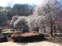 万葉庭園のしだれ梅が見頃を迎えています!こちらのしだれ梅、私の中では「春の訪れを実感できる風景」の一つで、毎年楽しみにしています。見事ですよ〜☆ マンサクなども咲き、日に日に一足早い春の装いです♪ (訪問:2026/02/21)