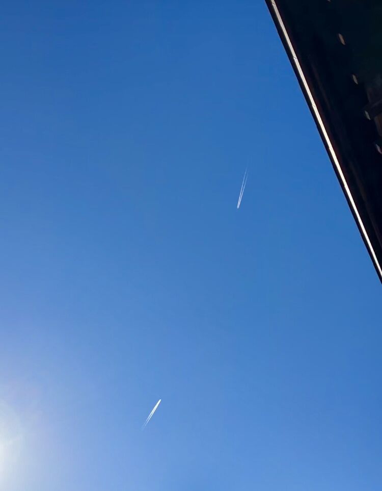今日は、立春です!2018年から毎月参拝を始めて今月で8年になりました(^^)先ず拝殿で参拝した後、社務所近くの小さな祠に手を合わせてから本殿へ!一番奥まで行き、作られた湧水の所から本殿をパチリ!本殿を撮るには、この場所が一番きれいに撮れますね(^^)本殿参拝が終わり何気なく空を見上げると2機の飛行機が‼︎(3枚の写真を見てみてね)結構な近距離で交差して行くので興奮しちゃいましたε3ε3なかなかお目にかかれないレアな状況を凄いタイミングで見ちゃいましたねー♪︎いいことありそう(ღˇ◡︎ˇღ)⤴︎⤴︎ (訪問:2026/02/04)