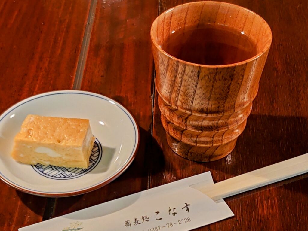 森の中に佇む和瓦の建物へ続く雰囲気の有るアプローチ!スっすッ!素敵~ィ!!入口周りの設えも良い雰囲気です(*´∀`)♪。。。スウィング・ジャズ等が流れる店内は外観と打って変わって和洋折衷の大好きな雰囲気の仕上がりです(*^^*)。。。基本的に客席はお座敷タイプですが、一つだけ半個室のテーブル席も有ります(^o^)/。。。今日は、他にお客様が居なかったのでテーブル席を使わせて頂きゆったりと【お蕎麦 単品¥1000】と【栃尾のあぶらあげ¥300】を楽しませて頂きましたヽ(*´▽)ノ♪。。。お蕎麦が来るまでの間、お通しのホンノリと甘い「玉子焼き」を楽しみました(*^^*)。。。大きく開口した窓外には、目の高さに餌台が設えられていて野鳥も食事を楽しんでいます(*´∀`)♪。。。少しして運ばれた細目の「お蕎麦」は、少し濃いめのつゆでツルツルと美味しく頂きました(*´ω`*)。。。県内では珍しい「栃尾のあぶらあげ」は、肉厚?の油揚げを香ばしく焼いたもので、ボリューミーでしたがお蕎麦、デザートのアイスクリーム共々ペロッと平らげてしまいましたヽ(*´▽)ノ♪。。。お店の持つ雰囲気!お蕎麦の味わい!全てが好みのお店でした(*^^*)。。。森の中に静かに佇む大人の隠れ家の佇まいの素敵な『蕎麦処 こなす』さん!また!伺います~ゥ( ^-^)ノ∠※。.:*:・'°☆ (訪問:2023/11/03)