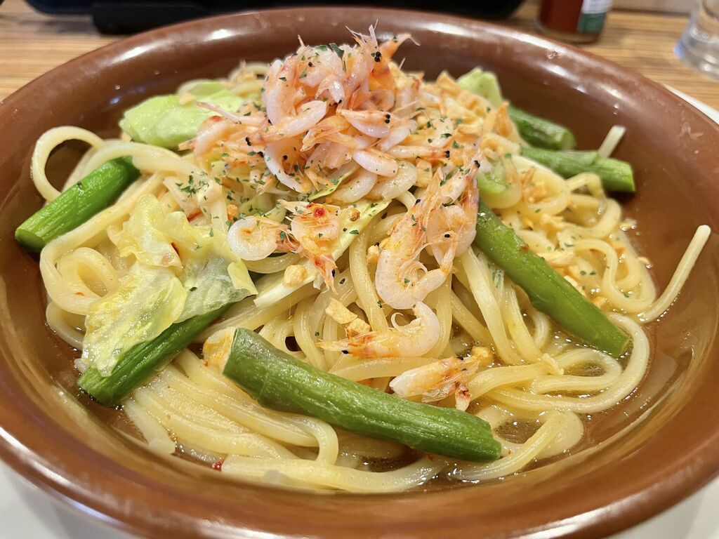 ガストの季節限定メニューが春らしくなりました。今日は桜エビとアスパラのクリームパスタ。桜エビの磯の香りって春を感じますね。少しエグ味のあるアスパラもそうですね。近づく春を感じると何となく嬉しくなります。これらの具材のクリームソースに生麺が絡みます。生麺のもちもち感もgoodです^_^ (訪問:2026/03/21)