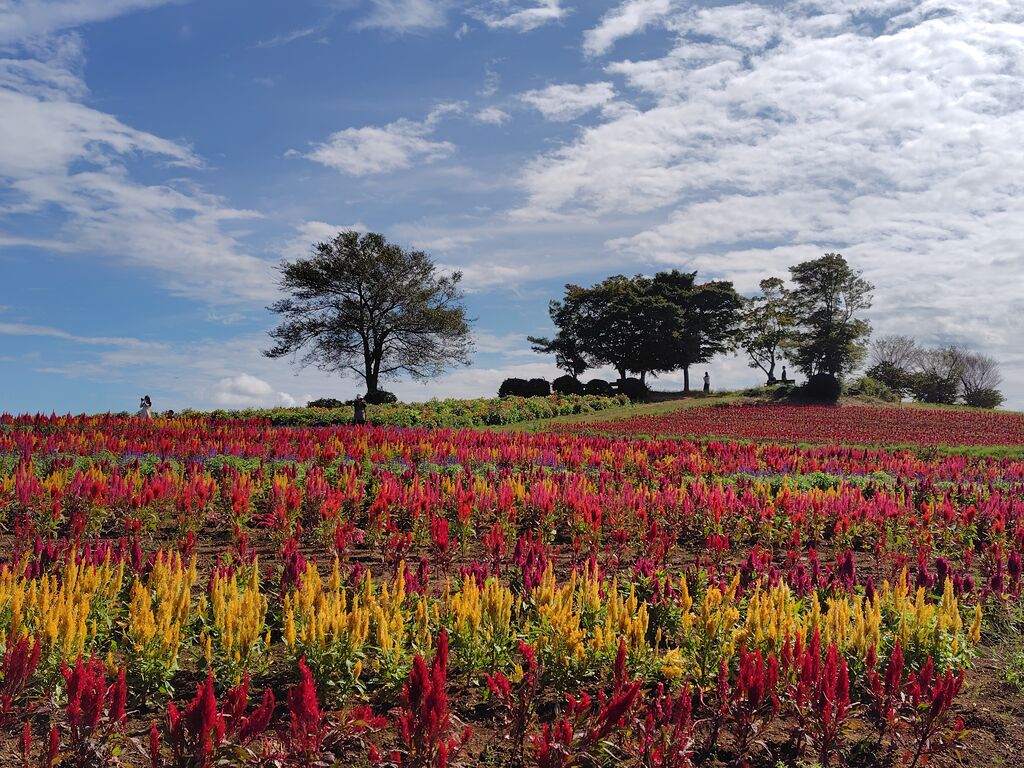 晴れ間が出てきたので、こちらへケイトウを見に行きました。奥の方は終わりに近かったのですが、入り口付近が綺麗に咲いていて、那須連山もはっきり見えて、素晴らしい景色に感激しました。入場料を払う価値がありました。次は春のチューリップが楽しみです。 (訪問:2025/09/19)