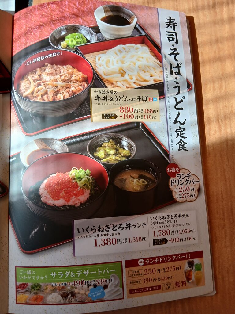 先月、食べに来てとてもうまく、そして、割引券をもらっていたので、ふたたび食べに来ました。今回は、キムチ牛すき鍋膳と濃厚抹茶とバニラ白玉アイスを、食べて来ました。鍋膳は、肉大盛にしました。肉は、やわらかくて、甘じょっぱく、そこへキムチが入り酸味と辛みが加わり、とてもうまく、ごはんのおかわりを大盛りにして、注文するとロボットが持って来てくれました。そして、デザートは、白玉がモチモチで濃厚な抹茶と食べると、抹茶の香りが鼻から抜け、冷たさもあり、とてもうまかったです。また、支払い後に、割引券を頂いたので、また、食べに来ようって思っています。ごちそうさまでした。 (訪問:2025/09/29)
