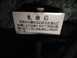 | ◇洞窟の規模は、高さ10m 幅2m 奥行100m。地元で信仰された如意輪観音に似た石灰石、黄土色一色の乳石や石筍などが伸び、見応えがあります。内部は常に15℃程、長時間居ると肌寒さを感じます。 | |