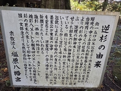 初めて立ち寄りました。逆杉を見て、すごい迫力と生命力、なんとなく、古代からの由緒の有る、歴史の中に居る様で、とても感動いたしました。また、池の水は素晴らしく澄んでおり、真っ白な大きな鯉が泳いでいました。 (訪問:2025/11/03)