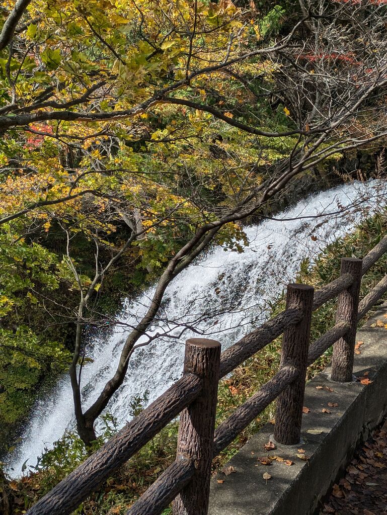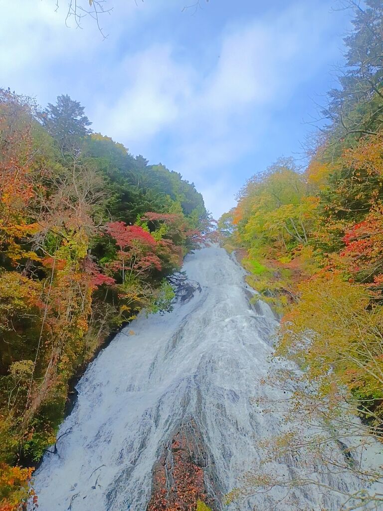 少し前にテレビで見て、そういえば行った事なかったと思い、竜頭ノ滝まで来たからと足を延ばしました。湯ノ湖から滝になる頂上を間近で見ると大迫力で、じっと見ていると吸い込まれそう(>_<) 滝に沿って階段を下りて行きますが、結構急なので、下りはまだしも上りはきつい(笑)いい運動になりました。観瀑台からは色付いた木々の中を落ちるダイナミックな滝が見られて、あまりの迫力に見入ってしまいます。外国のカップルさんがお互いに写真を撮り合っていました。せっかく奥日光まで来てくれたので、いい思い出にしてもらいたいと、英語も話せないのにゼスチャーで乗り切り、お二人並んでの写真をパチリ。簡単な英会話くらいは勉強すべきだと痛感しました(^-^; (訪問:2025/10/23)